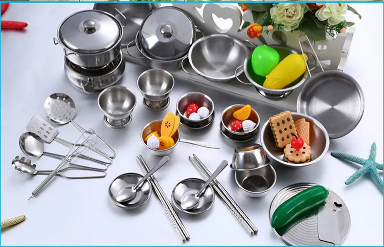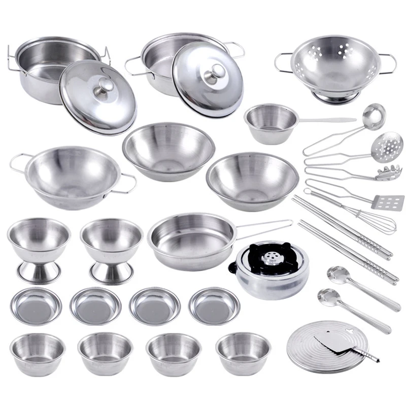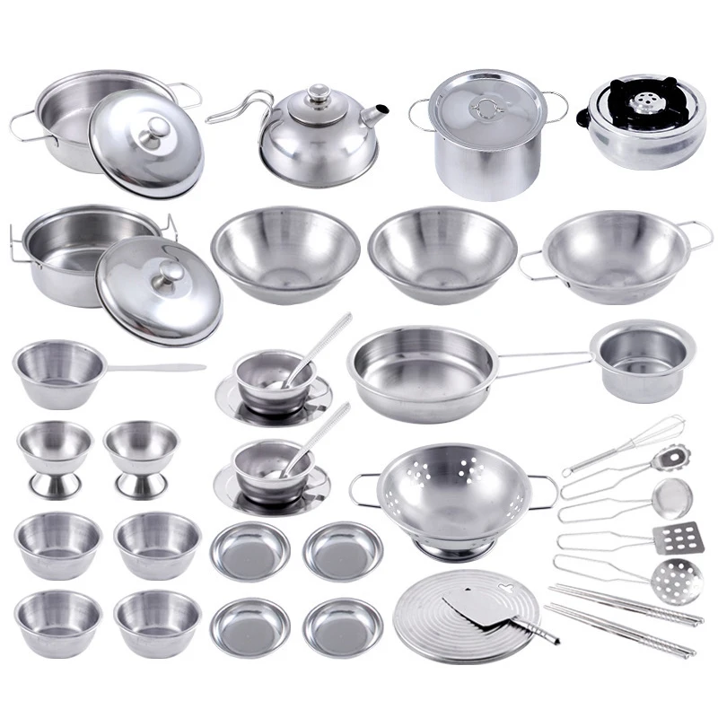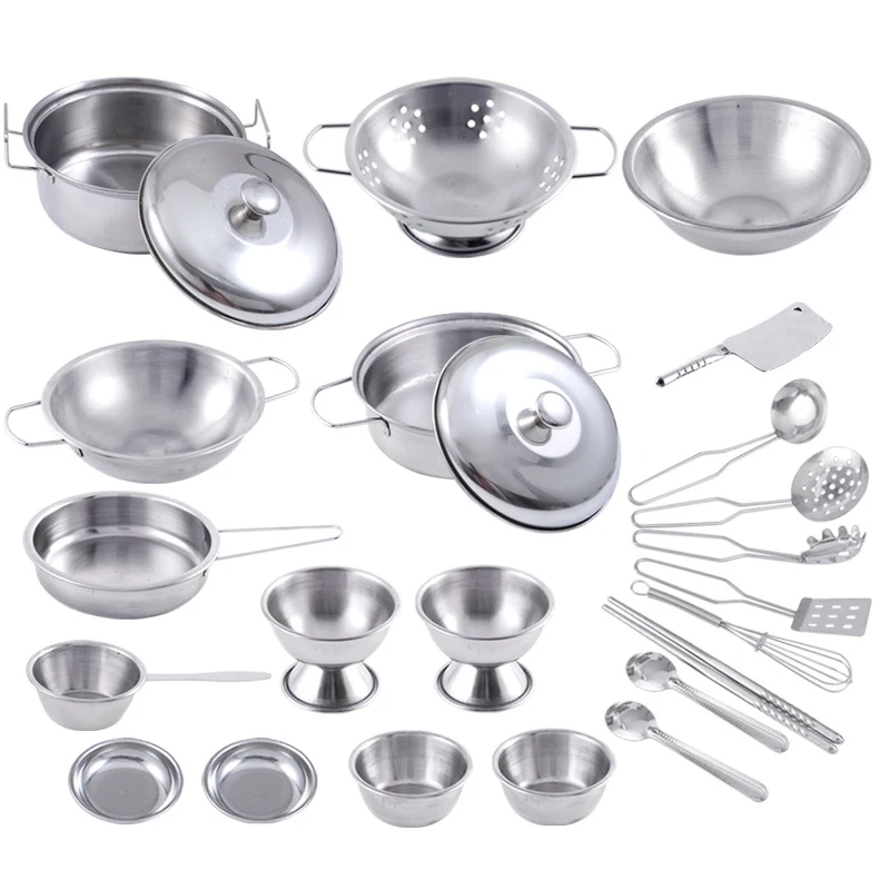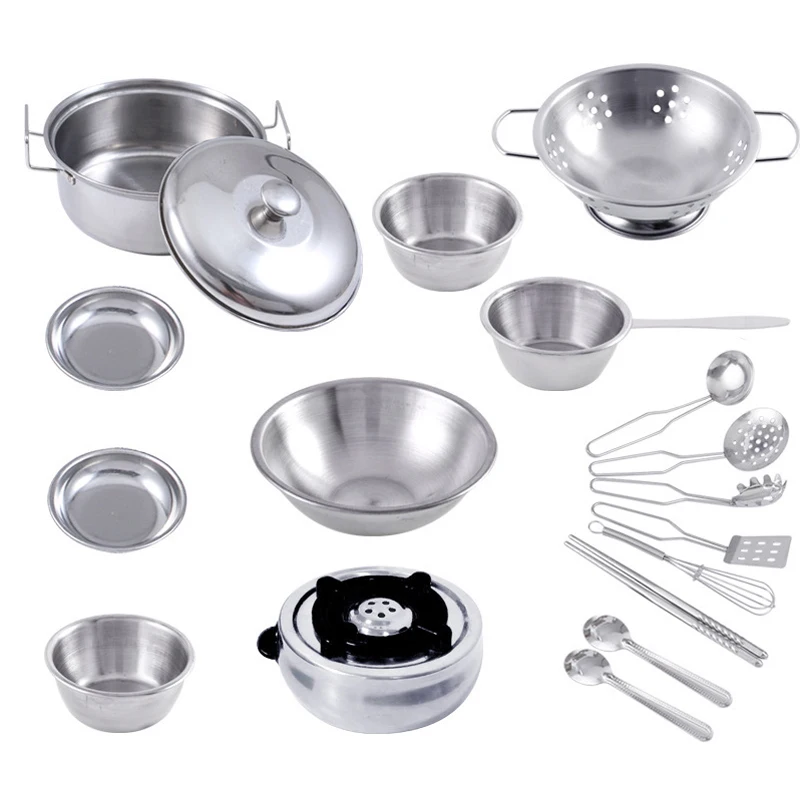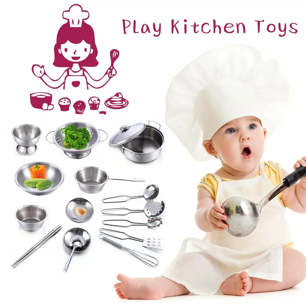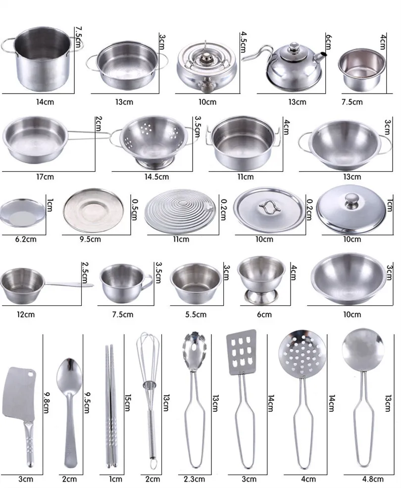 Practice: Fun kitchen cookware playset, provide a truly gourmet play experience.Children can prepare and serve all their favorites with this play set.Safety: Non-toxic stainless steel material: Safe and reliable, unique and exquisite workmanship brings kids a life-like feeling.Function: Through play, children are using eye-hand coordination, wrist rotation, precision, and fine motor movements.Great Gift: Pretend Play set that fosters healthy early childhood development by helping kids interpret and imitate the world around them, perfect gift for your child.