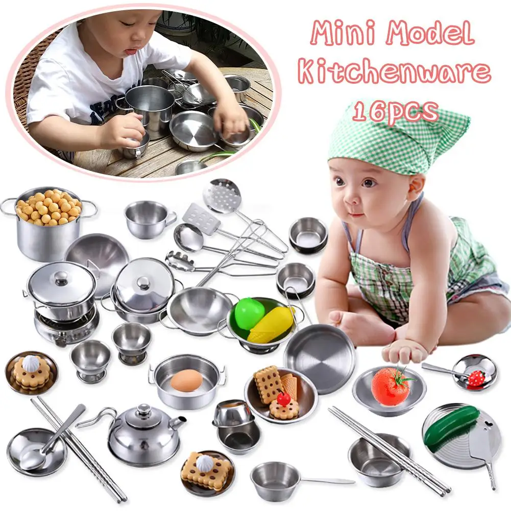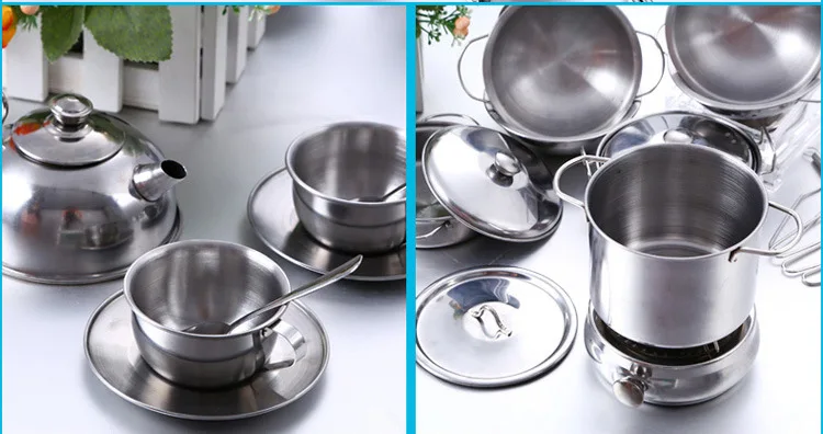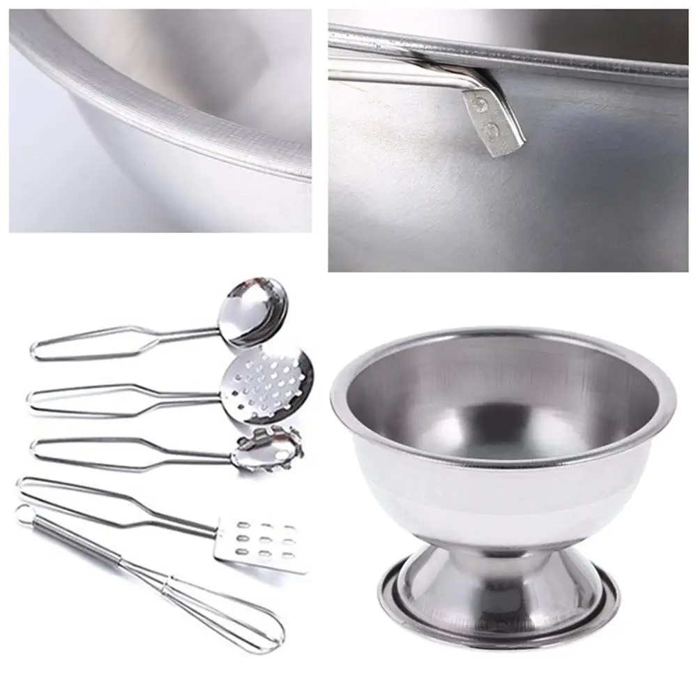 Stainless Steel Play Pots Pans Set for Toddler Interesting Pretend Cooking Toys Kitchenware Play House Toys Kids Interactive Toy